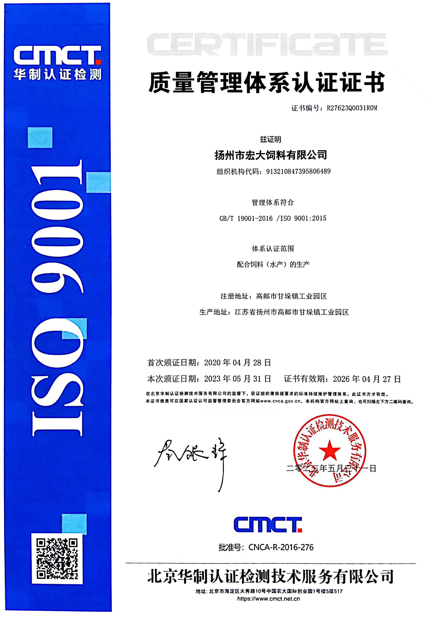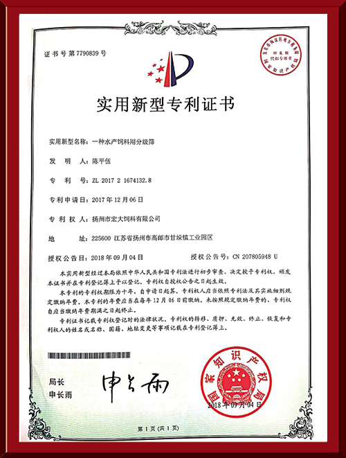 揚(yáng)州市宏大飼料有限公司 揚(yáng)州市宏大飼料有限公司是一家集科研與生產(chǎn)為一體的大型民營企業(yè),座落在魚米之鄉(xiāng)高郵東郊,傍依郵興公路、澄子河,水陸交通便捷,于2002年建成投產(chǎn),占地面積60畝,固定投資1.5億元?,F(xiàn)有7條生產(chǎn)線,其中時(shí)產(chǎn)15噸高檔水產(chǎn)膨化生產(chǎn)線2條,均采用國內(nèi)先進(jìn)的真空后噴涂技術(shù)和低溫烘干技術(shù)(飼料內(nèi)的各種營養(yǎng)不受破損)、臺(tái)灣宜大高檔蝦料生產(chǎn)線2條和魚飼料生產(chǎn)線3條。